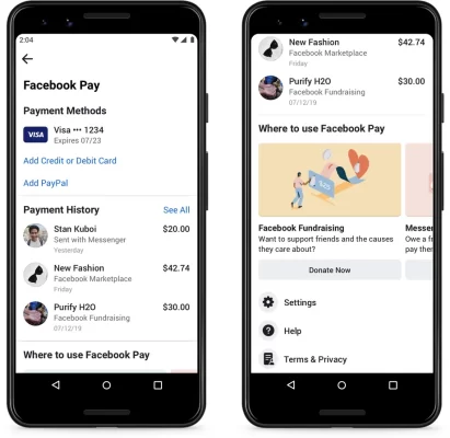 Facebook Pay will be available in the settings section of the Facebook or Messenger apps, and it will support most debit and credit cards and PayPal. Facebook is using Stripe, PayPal, and others to process these payments.